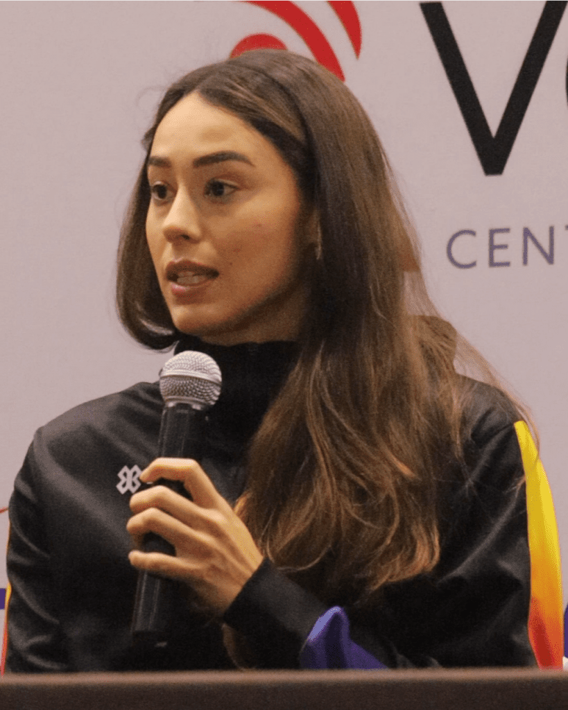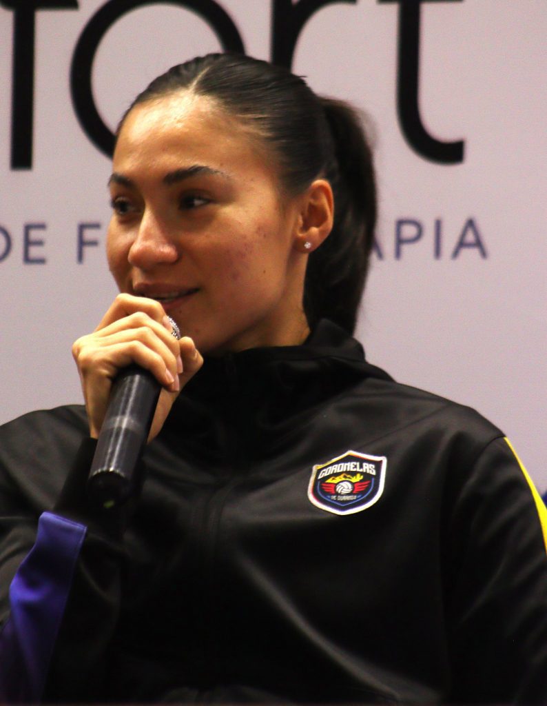 Uno de los momentos más emotivos de la conferencia fue protagonizado por Atenas Gutiérrez, quien se sinceró sobre su reciente y difícil decisión de retirarse del voleibol de playa para dedicarse de lleno a la sala con las Coronelas, pensando en su futuro y en su familia.